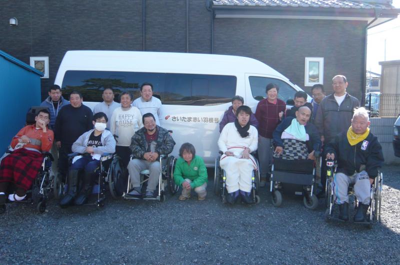 赤い羽根共同募金からの贈り物です!日産のキャラバン!なんと車いすが4台も乗れます!